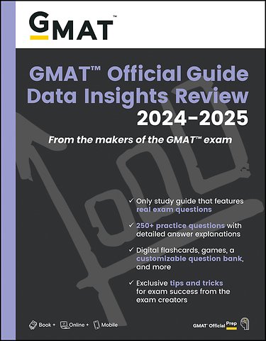 The GMAT™ Official Guide Data Insights Review provides focused practice to master the data insights section of the exam with 250+ practice questions that are not included in the main Official Guide 2024-2025.