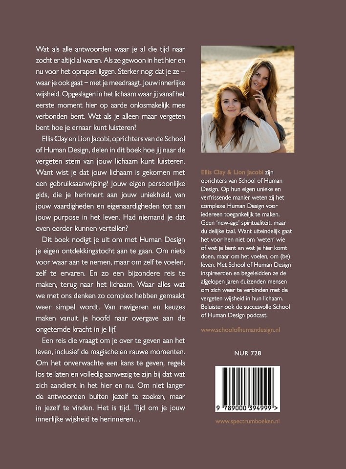 Ellis Clay en Lion Jacobi, oprichters van de School of Human Design, delen in dit boek hoe jij naar de vergeten stem van jouw lichaam kunt luisteren. Want wist je dat jouw lichaam is gekomen met een gebruiksaanwijzing? Jouw eigen persoonlijke gids, die je herinnert aan jouw uniekheid, van jouw vaardigheden en eigenaardigheden tot aan jouw purpose in het leven. Had niemand je dat even eerder kunnen vertellen?