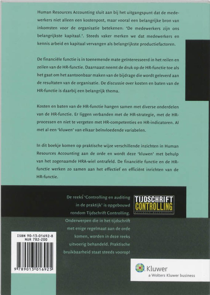 In dit boekje komen op praktische wijze verschillende inzichten in Human Resources Accounting aan de orde en wordt deze 'kluwen' met behulp van het zogenaamde HRA-wiel ontrafeld. De financiële functie en de HR-functie werken zo samen aan het effectief en efficiënt inrichten van de HR-functie.