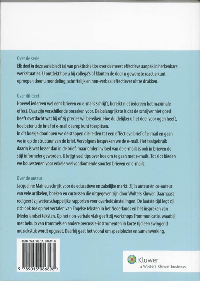In 'Zakelijke brieven en e-mails schrijven' doorlopen we de stappen die leiden tot een effectieve brief of e-mail en gaan we in op de structuur van de brief. Vervolgens bespreken we de e-mail. Het taalgebruik daarin is wat losser dan in de brief, maar onder invloed van de e-mails is ook in brieven de stijl informeler geworden. U krijgt veel tips over hoe om te gaan met e-mails. Tot slot bieden we bouwstenen voor enkele veelvoorkomende soorten brieven en e-mails.