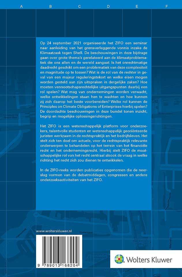 Op 24 september 2021 organiseerde het ZIFO een seminar naar aanleiding van het grensverleggende vonnis inzake de klimaatzaak tegen Shell. In deze bundel wordt dit vonnis vanuit verschillende invalshoeken en disciplines geanalyseerd, met een blik naar de toekomst.