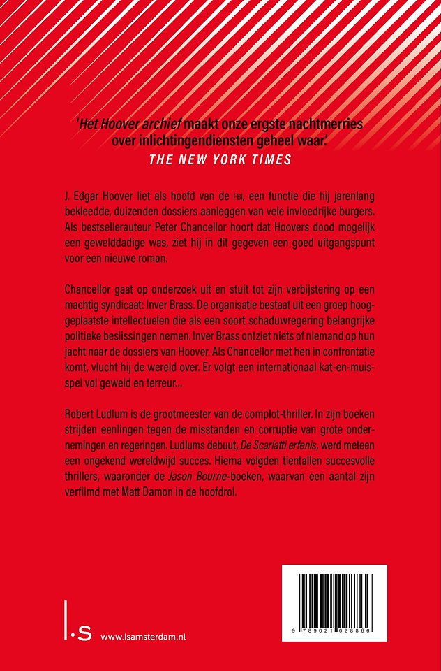 (POD) In Het Hoover archief van Robert Ludlum overlijdt J. Edgar Hoover en laat hij een archief van duizenden dossiers van vele invloedrijke burgers achter die hij in zijn carrière als hoofd van de FBI heeft aangelegd. Als Peter Chancellor, auteur van bestsellers, hoort dat Hoovers dood mogelijk een gewelddadige was, ziet hij in dit gegeven een goed uitgangspunt voor een nieuwe roman.