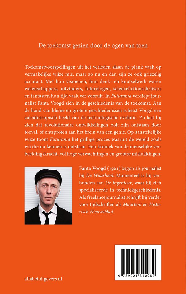 In ‘Futurama’ verdiept journalist Fanta Voogd zich in de geschiedenis van de toekomst. Aan de hand van kleine en grotere geschiedenissen schetst Voogd een caleidoscopisch beeld van de technologische evolutie. Zo laat hij zien dat revolutionaire ontwikkelingen ooit zijn ontstaan door toeval, of ontsproten aan het brein van een genie.