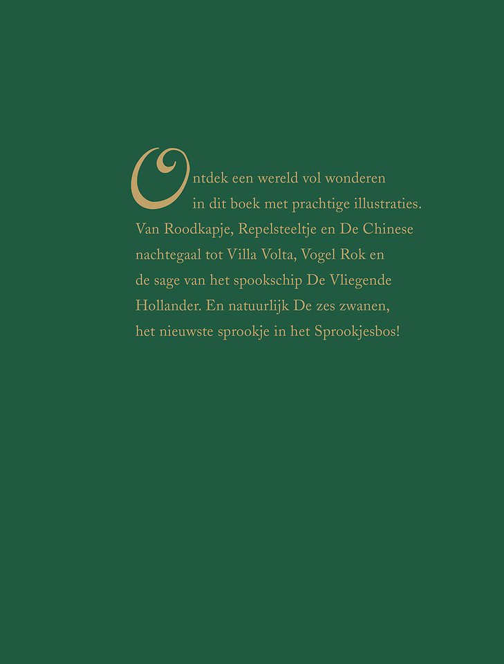 Ontdek een wereld vol wonderen in dit boek met prachtige illustraties. Van Roodkapje, Repelsteeltje en de Chinese nachtegaal tot Villa Volta, Vogel Rok en de sage van het spookschip De Vliegende Hollander. En natuurlijk De zes zwanen, het nieuwste sprookje in het sprookjesbos!