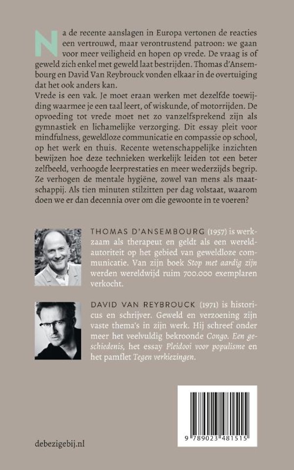 Na elke aanslag gaan we voor meer veiligheid – en hopen we op meer vrede. Maar is dat genoeg? Thomas d'Ansembourg en David Van Reybrouck vragen zich af of geweld zich echt enkel met geweld laat bestrijden.