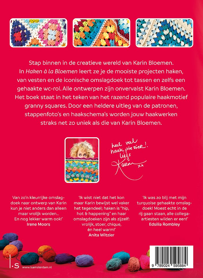 In Haken à la Bloemen – Squares & colors laat Karin Bloemen zien hoe je haar favoriete kleurrijke kledingstukken en accessoires zelf kunt haken!