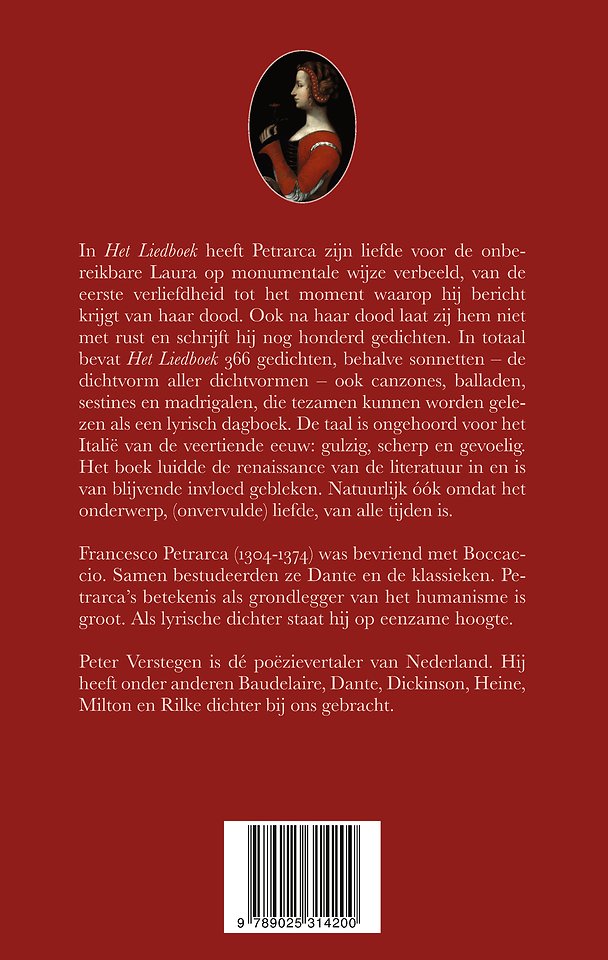 In Het Liedboek heeft Petrarca zijn liefde voor de onbereikbare Laura op monumentale wijze verbeeld, van de eerste verliefdheid tot het moment waarop hij bericht krijgt van haar dood. Ook na haar dood laat zij hem niet met rust en schrijft hij nog honderd gedichten. In totaal bevat Het Liedboek 366 gedichten, behalve sonnetten – de dichtvorm aller dichtvormen – ook canzones, balladen, sestines en madrigalen, die tezamen kunnen worden gelezen als een lyrisch dagboek. De taal is ongehoord voor het Italië van de veertiende eeuw: gulzig, scherp en gevoelig. Het boek luidde de renaissance van de literatuur in en is van blijvende invloed gebleken. Natuurlijk óók omdat het onderwerp, (onvervulde) liefde, van alle tijden is.