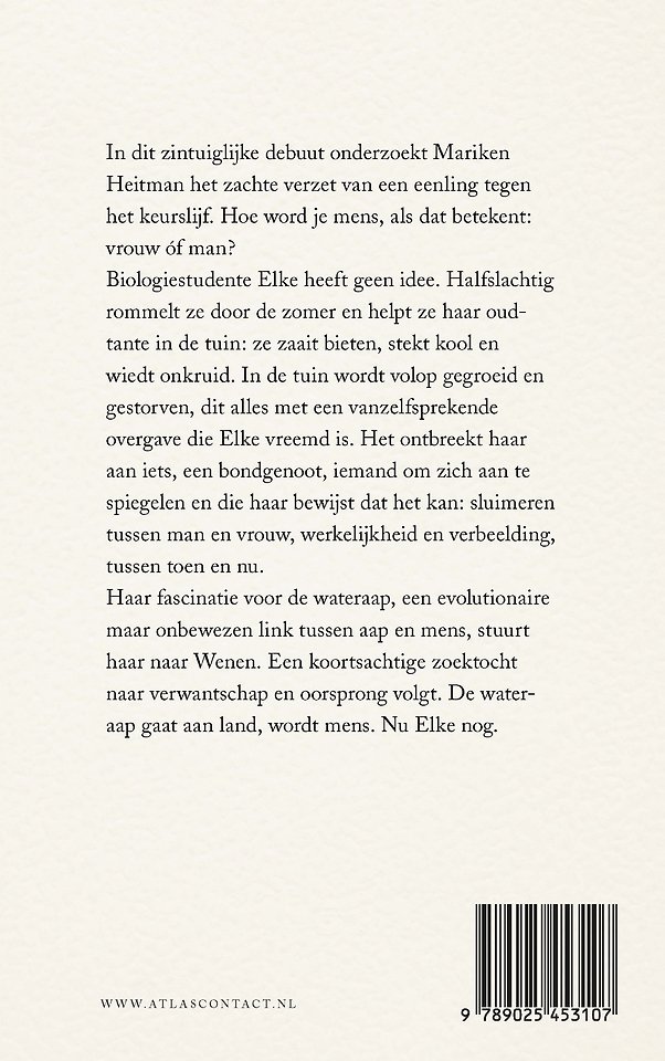 In het zintuiglijke verhaal ‘De wateraap’ onderzoekt Mariken Heitman het zachte verzet van een eenling tegen het keurslijf. Hoe word je mens, als dat betekent: vrouw óf man?