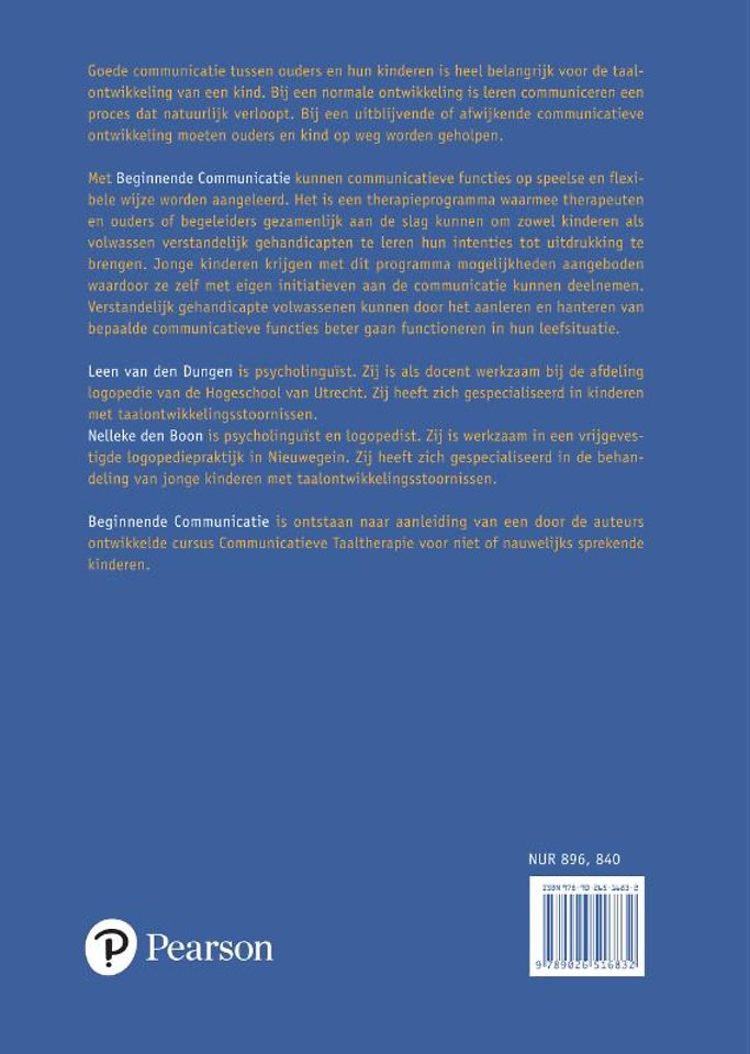 Leen van den Dungen was psycholinguïst en als docent werkzaam bij de afdeling logopedie van de Hogeschool van Utrecht. Nelleke den Boon is psycholinguïst en logopedist en werkzaam in een vrijgevestigde logopediepraktijk in Nieuwegein.