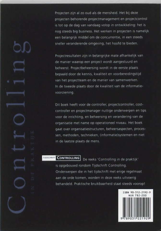 Dit boek heeft voor de controller, projectcontroller en projectmanager nuttige onderwerpen en tips voor de inrichting en beheersing en verandering van de organisatie van de organisatie met name op operationeel niveau. Het boek gaat over organisatiestructuren, beheersaspecten, processen, methoden, technieken, (informatie)systemen en niet in de laatste plaats de mens.