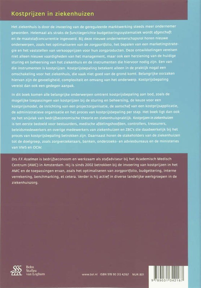 Meer over Franck AsselmanHet ziekenhuis heeft door de invoering van de gereguleerde marktwerking steeds meer de rol van ondernemer gekregen. Bij deze nieuwe rol horen nieuwe onderwerpen, zoals het optimaliseren van de zorgportfolio, het bepalen van een marketingstrategie en het vaststellen van verkoopprijzen voor zorgproducten. Deze ontwikkelingen vereisen niet alleen nieuwe vaardigheden van het management, maar ook een herziening van de huidige sturing en beheersing van het ziekenhuis en de instrumenten die hiervoor nodig zijn. Een van die instrumenten is kostprijzen. Kostprijsbepaling betekent in de praktijk nogal een omschakeling voor het ziekenhuis, die vaak niet goed van de grond komt. Belangrijke oorzaken hiervan zijn de gevoeligheid, complexiteit en omvang van het onderwerp. Kostprijsbepaling vereist dan ook een gedegen aanpak.