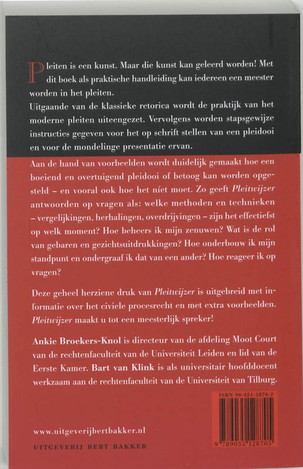 Aan de hand van voorbeelden wordt duidelijk gemaakt hoe een boeiend en overtuigend pleidooi of betoog kan worden opgesteld – en vooral ook hoe het niet moet. Zo geeft 'Pleitwijzer' antwoord op vragen als: