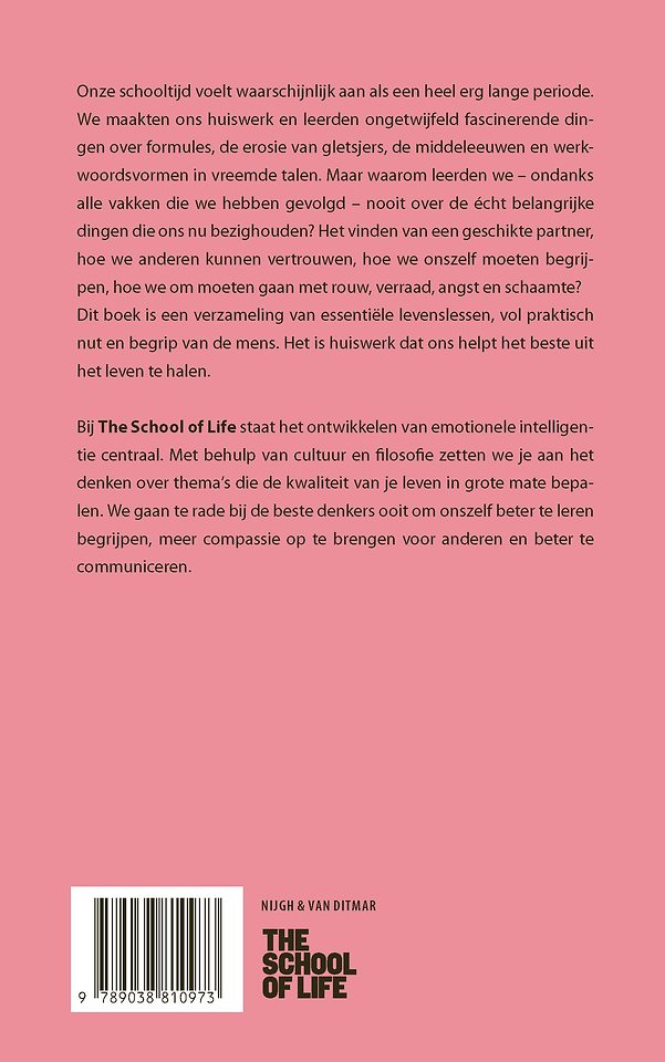 Maar waarom leerden we – ondanks alle vakken die we hebben gevolgd – nooit over de écht belangrijke dingen die ons nu bezighouden? Het vinden van een geschikte partner, hoe we anderen kunnen vertrouwen, hoe we onszelf moeten begrijpen, hoe we om moeten gaan met rouw, verraad, angst en schaamte?