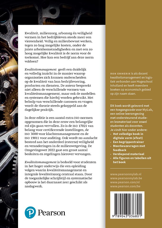 Organisaties onderscheiden zich door de kwaliteit van hun producten of hun diensten, goede arbeidsomstandigheden en hun houding ten opzichte van duurzaamheid. Kwaliteitsmanagement geeft een duidelijk inzicht in hoe organisaties kunnen streven naar excellente bedrijfsvoering, producten en diensten. De auteurs bespreken de verschillende vormen van kwaliteitsmanagement en de modellen en systemen die hierbij worden gebruikt.