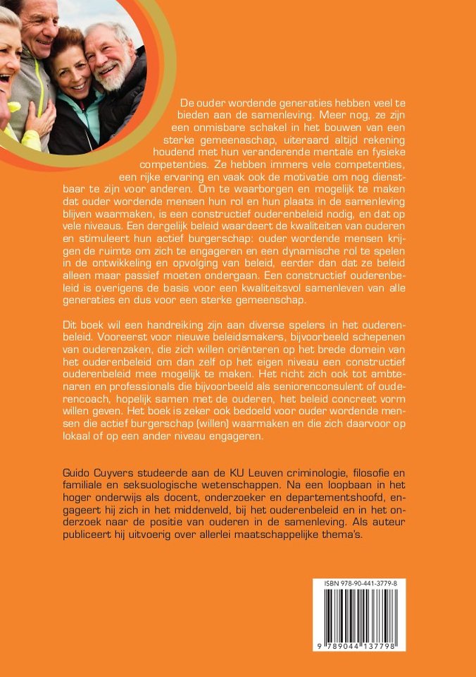 Dit boek wil een handreiking zijn aan diverse spelers in het ouderenbeleid. Vooreerst voor nieuwe beleidsmakers, bijvoorbeeld schepenen van ouderenzaken, die zich willen oriënteren op het brede domein van het ouderenbeleid om dan zelf op het eigen niveau een constructief ouderenbeleid mee mogelijk te maken. Het richt zich ook tot ambtenaren en professionals die bijvoorbeeld als seniorenconsulent of ouderencoach, hopelijk samen met de ouderen, het beleid concreet vorm