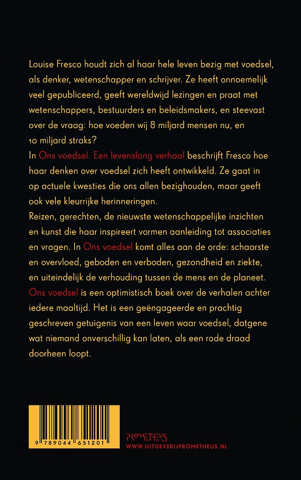 Louise Fresco houdt zich al haar hele leven bezig met voedsel, als denker, wetenschapper en schrijver. Ze heeft onnoemelijk veel gepubliceerd, geeft wereldwijd lezingen en praat met wetenschappers, bestuurders en beleidsmakers, en steevast over de vraag: hoe voeden wij 8 miljard mensen nu, en 10 miljard straks?