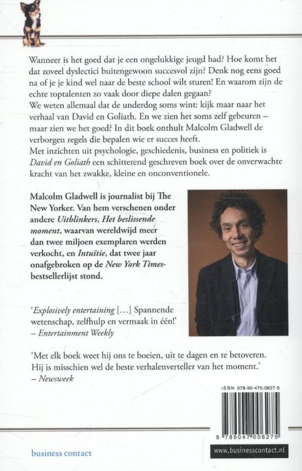 Met inzichten uit psychologie, geschiedenis, business en politiek is David en Goliath een schitterend geschreven boek over de onverwachte kracht van het zwakke, kleine en onconventionele.