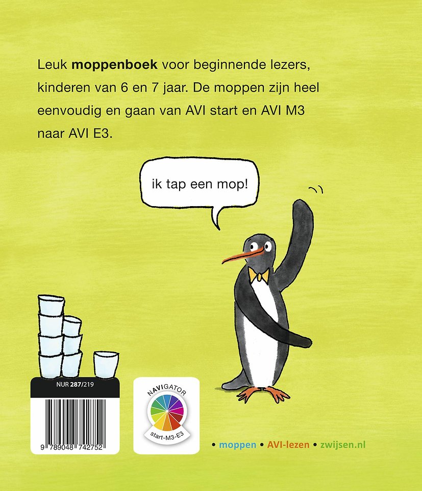 Ken je die mop van … Kinderen vinden het leuk om moppen te tappen. En hoe leuk is het dat ze die moppen nu gewoon zelf kunnen lezen? De moppen zijn geschreven op AVI Start, M3 en E3, dus ideaal voor kinderen van 6-7 jaar die leren lezen in groep 3. Bij de korte moppen staat ook nog eens grappig beeld. Leesplezier gegarandeerd!
