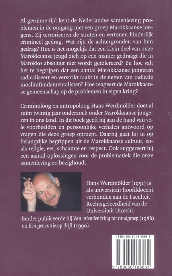 Al geruime tijd kent de Nederlandse samenleving problemen in de omgang met een groep Marokkaanse jongens. Zij terroriseren de straten en vertonen hinderlijk crimineel gedrag. Wat zijn de achtergronden van hun gedrag? Hoe is het mogelijk dat een klein deel van onze Marokkaanse jeugd zich op een manier gedraagt die in Marokko absoluut niet wordt getolereerd? En hoe valt het te begrijpen dat een aantal Marokkaanse jongeren radicaliseert en verstrikt raakt in de netten van radicale moslimfundamentalisten? Hoe reageert de Marokkaanse gemeenschap op de problemen in eigen kring? Criminoloog en antropoloog Hans Werdmölder doet al ruim twintig jaar onderzoek onder Marokkaanse jongeren in ons land. In dit boek geeft hij aan de hand van vele voorbeelden en persoonlijke verhalen antwoord op vragen die deze groep oproept. Daarbij gaat hij in op belangrijke begrippen uit de Marokkaanse cultuur, zoals religie, eer, schaamte, respect. Ook suggereert hij een aantal oplossingen voor de problematiek die onze samenleving zo bezighoudt.
