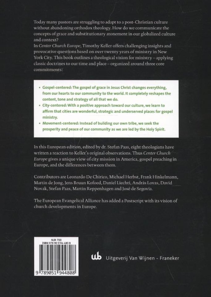 In this European edition, edited by dr. Stefan Paas, eight theologians have written a reaction to Keller's original observations. Thus Center Church Europe gives a unique view of city mission in America, gospel preaching in Europe, and the differences between them.