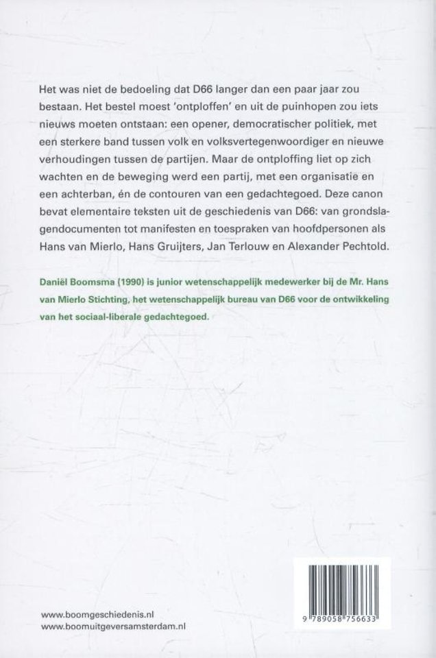 Dit boek is de geschiedenis van D66 aan de hand van de originele bronnen: van beginselprogramma's tot toespraken van hoofdpersonen als Hans van Mierlo, Hans Gruijters, Jan Terlouw en Alexander Pechtold.