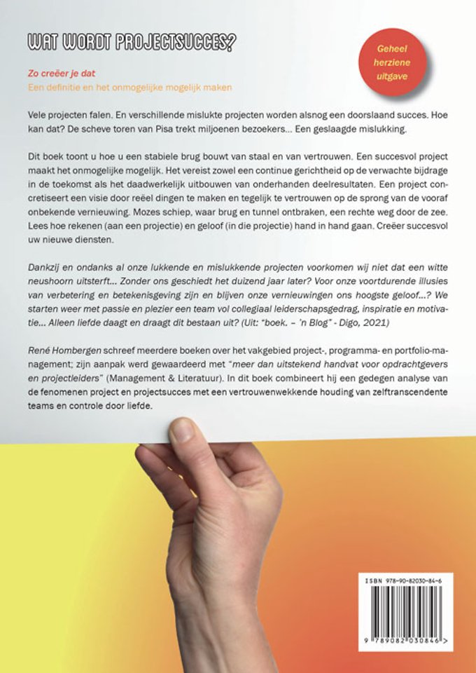 Dit boek toont u hoe u een stabiele brug bouwt van staal en van vertrouwen. Een succesvol project maakt het onmogelijke mogelijk. Het vereist zowel een continue gerichtheid op de verwachte bijdrage in de toekomst als het daadwerkelijk uitbouwen van onderhanden deelresultaten. Een project concretiseert een visie door reëel dingen te maken en tegelijk te vertrouwen op de sprong van de vooraf onbekende vernieuwing. Mozes schiep, waar brug en tunnel ontbraken, een rechte weg door de zee. Lees hoe rekenen (aan een projectie) en geloof (in die projectie) hand in hand gaan. Creëer succesvol uw nieuwe diensten.