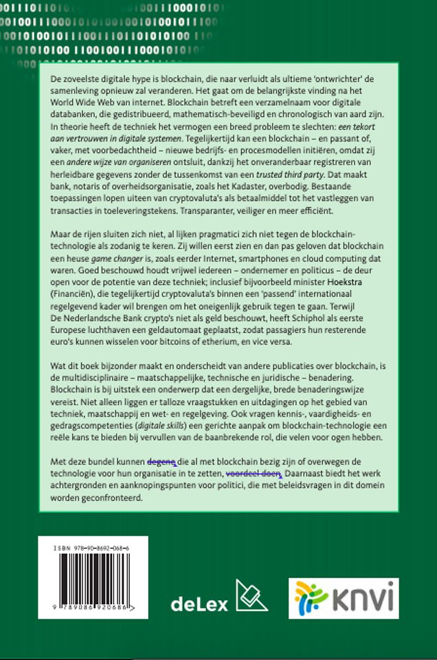 Met deze bundel kunnen degenen die al met blockchain bezig zijn of overwegen de technologie voor hun organisatie in te zetten, hun voordeel doen. Daarnaast biedt het werk achtergronden en aanknopingspunten voor politici, die met beleidsvragen in dit domein worden geconfronteerd.