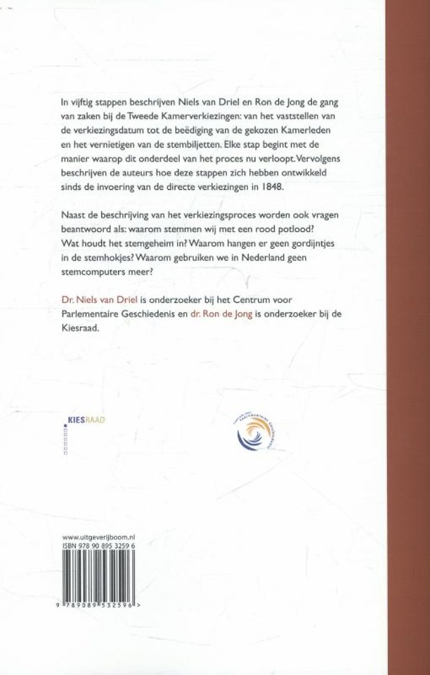 In vijftig stappen beschrijft dit boek het proces vanaf het vaststellen van de verkiezingsdatum tot de beëdiging van de gekozen Kamerleden. Elke stap begint met de manier waarop de verkiezing nu verloopt. Vervolgens beschrijven de auteurs hoe deze stappen zich hebben ontwikkeld vanaf de invoering van de directe verkiezingen in 1848. Ook worden vragen beantwoord als: waarom hangen er geen gordijntjes in de stemhokjes en waarom gebruiken we geen stemcomputers?
