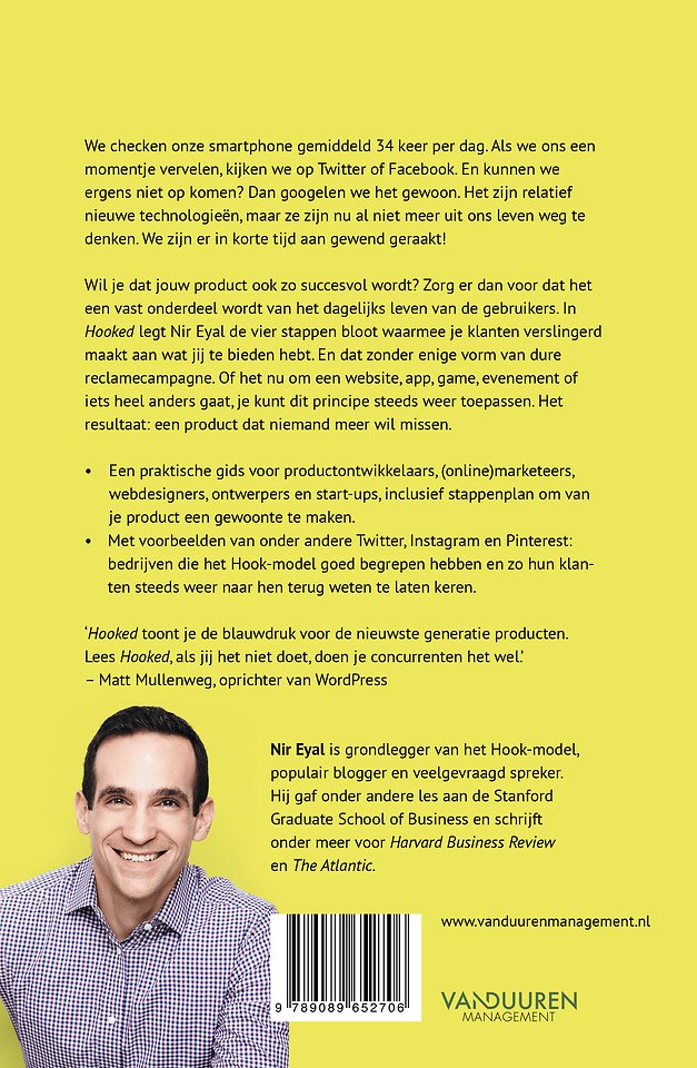 Meer over Nir EyalWe checken onze smartphone gemiddeld 34 keer per dag. Als we ons een momentje vervelen, kijken we op Twitter of Facebook. En kunnen we ergens niet op komen? Dan googelen we het gewoon. Het zijn relatief nieuwe technologieën, maar ze zijn nu al niet meer uit ons leven weg te denken. We zijn er in korte tijd aan gewend geraakt!