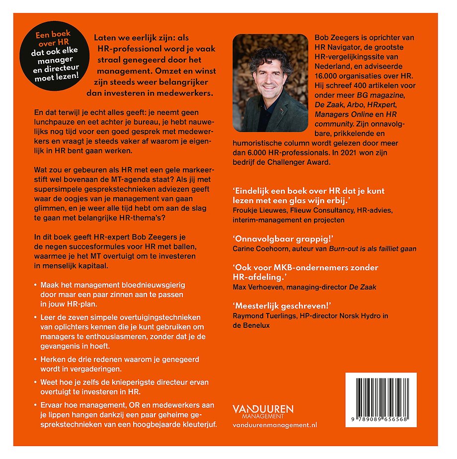 In dit boek geeft HR-expert Bob Zeegers je de negen succesformules voor HR met ballen, waarmee je het MT overtuigt om te investeren in menselijk kapitaal.