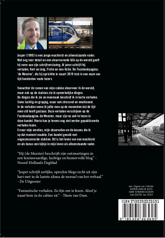 Vanachter de ramen van mijn cabine observeer ik de wereld, maar ook op de stations zie ik opmerkelijke dingen. De dingen die ik zie en meemaak beschrijf ik in korte verhalen. Soms luchtig en grappig, maar ook stressvol en emotioneel. In de verhalen neem ik jullie mee op de momenten dat de tijd even stil heeft gestaan. Deze verhalen verschijnen op de Facebookpagina: de Meester, maar zijn nu ook te lezen in deze bundel. Hierin kan je tevens nog niet eerder gepubliceerde verhalen lezen.