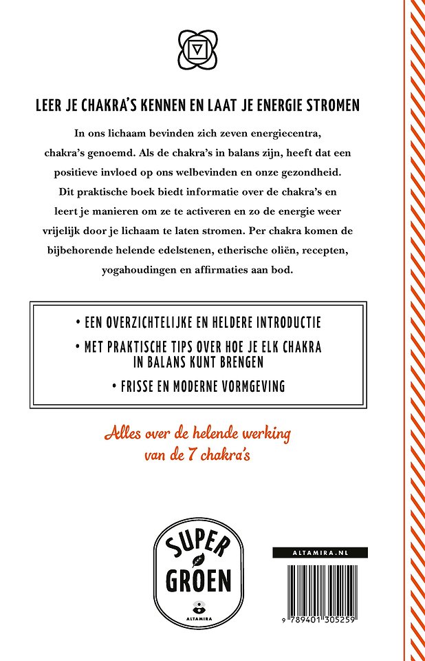'Chakra's' is het praktische boek voor iedereen die wil leren over de zeven centra die energie door ons lichaam laten stromen. Deze centra worden chakra's genoemd. Als de chakra's in balans zijn, heeft dat een positieve invloed op onze gezondheid en ons lichaam. 'Chakra's' staat boordevol informatie over de zeven chakra's en leert je methoden om ze te activeren en de energie vrijelijk door je lichaam te laten stromen. Iedere chakra komt aan bod, evenals de edelstenen, etherische oliën, recepten, yogahoudingen en affirmaties die je kunnen helpen je lichaam te helen.