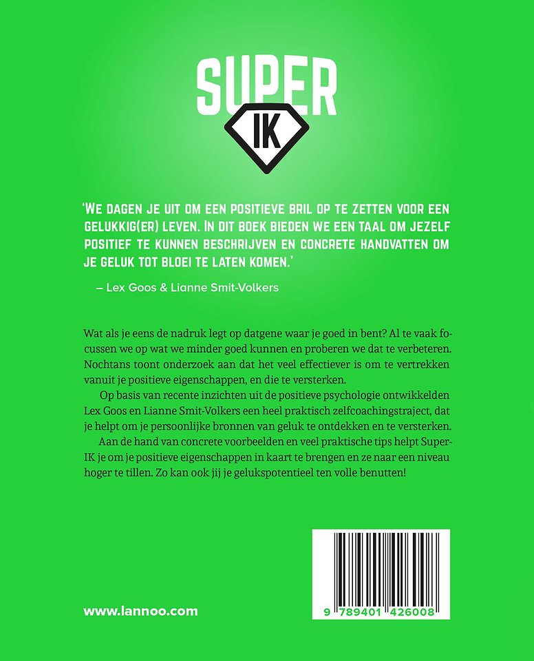 Een positief alternatief voor de labeldrift in onze maatschappij Wat als je vertrekt vanuit een positiever denkkader en de nadruk legt op datgene waar je goed in bent? 'Super-IK' neemt de proef op de som. Al te vaak focussen we op wat we minder goed kunnen en proberen we dat te verbeteren. Nochtans toont onderzoek aan dat het veel effectiever is om te vertrekken van je positieve eigenschappen, en die te versterken.