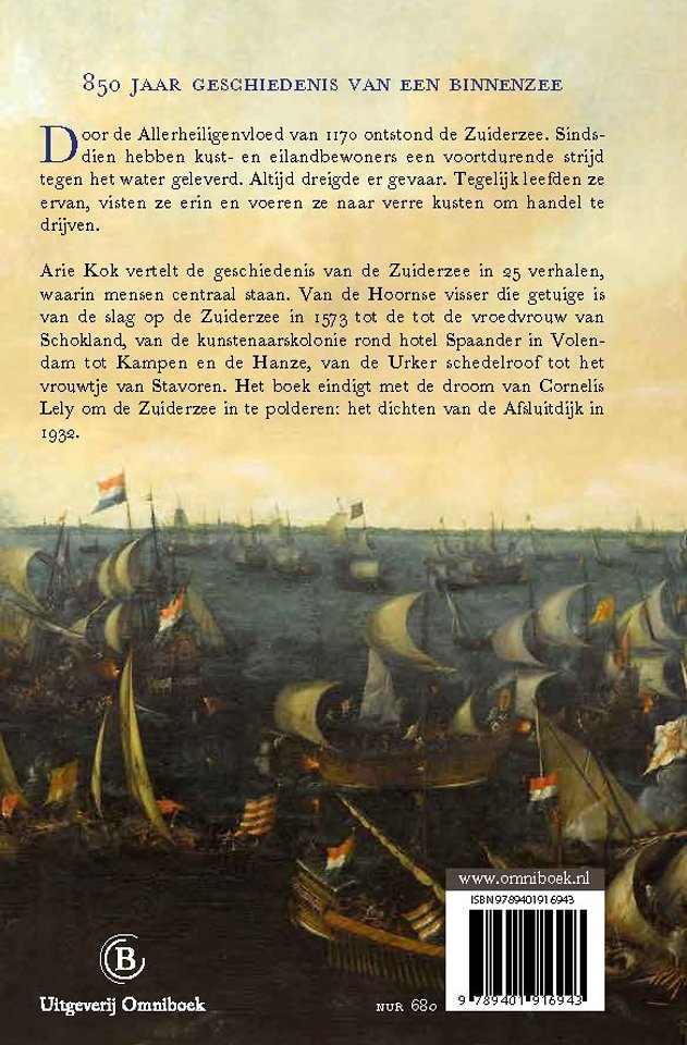 Arie Kok vertelt de geschiedenis van de Zuiderzee in 25 verhalen, waarin vaak mensen centraal staan. Van de watergeus die de Slag op de Zuiderzee (1573) overleeft tot de vroedvrouw van Schokland, van de haringvisserij tot de walvisvaart. Het boek eindigt met het sluiten van de Afsluitdijk in 1932.