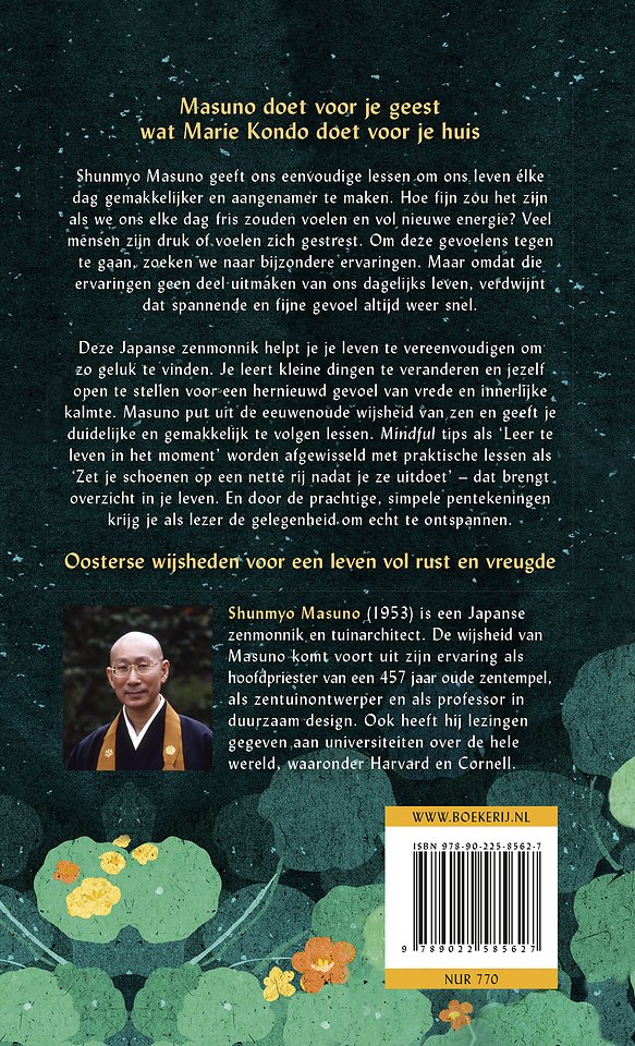 ‘Een simpeler leven leiden is een oefening maar het is ook normaal en gewoon. De eenvoudige en relevante tips van Shunmyo Masuno beginnen voorzichtig en met de meest troostende alledaagsheid, wat voor ons, de uitgeputte massa, voelt als een warme adem van vertrouwdheid.’ Sarah Wilson, New York Times-bestsellerauteur