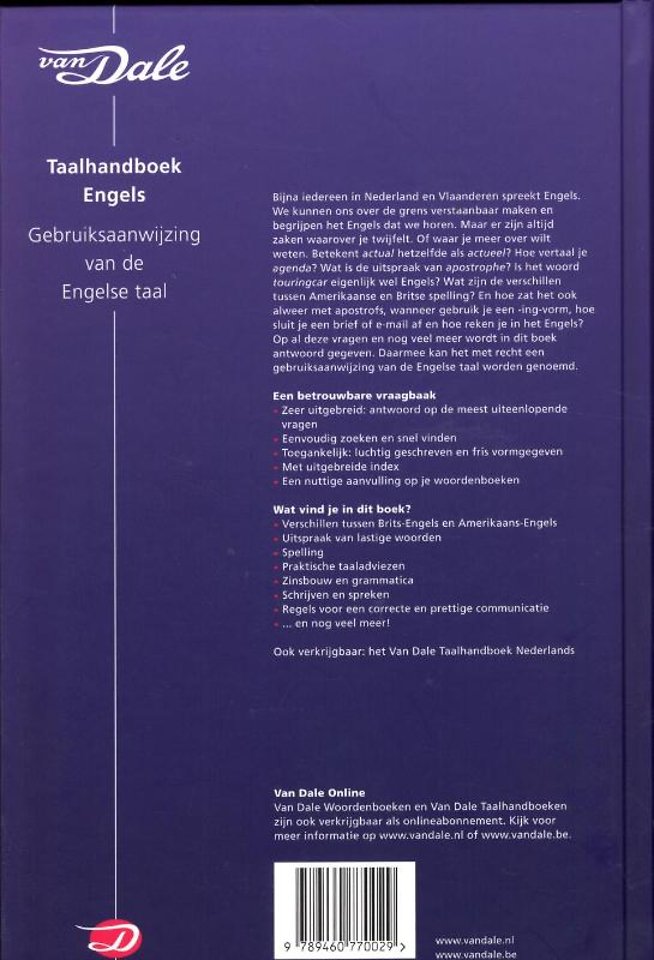 Bijna iedereen in Nederland en Vlaanderen spreekt Engels. We kunnen ons over de grens verstaanbaar maken en begrijpen het Engels dat we horen. Maar er zijn altijd zaken waarover u twijfelt. Of waar u meer over wilt weten. Betekent actual hetzelfde als actueel? Hoe vertaal je agenda? Wat is de uitspraak van apostrophe? Is het woord touringcar eigenlijk wel Engels? Wat zijn de verschillen tussen Amerikaanse en Britse spelling? En hoe zat het ook alweer met apostrofs, wanner gebruik je een –ing-vorm, hoe sluit je een brief of e-mail af en hoe reken je in het Engels? Op al deze vragen en nog veel meer wordt in dit boek antwoord gegeven. Daarmee kan het met recht een gebruiksaanwijzing van de Engelse taal worden genoemd.