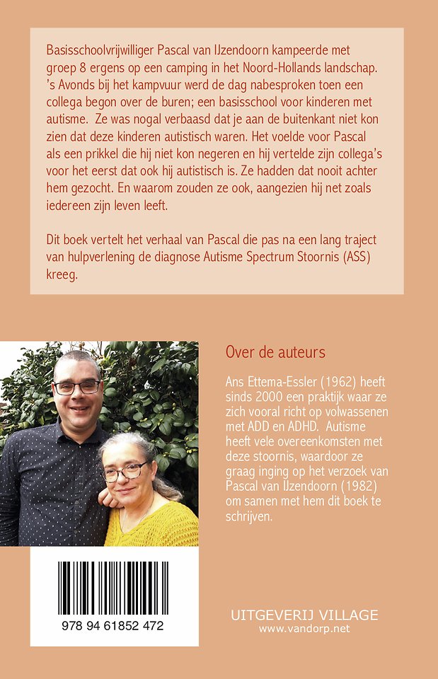 Ans Ettema-Essler (1962) heeft sinds 2000 een praktijk waar ze zich vooral richt op volwassenen met ADD en ADHD. Autisme heeft vele overeenkomsten met deze stoornis, waardoor ze graag inging op het verzoek van Pascal van IJzendoorn (1982) om samen met hem dit boek te schrijven.