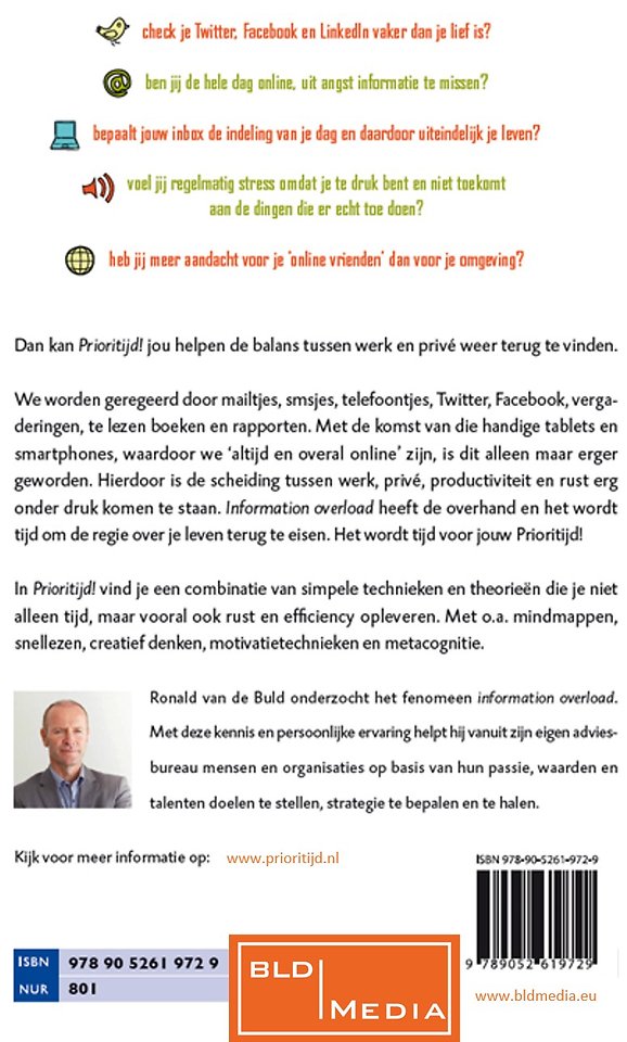 Meer over Ronald van de BuldWe worden geregeerd door mailtjes, vergaderingen, Whatsapp berichten, Instagram, Twitter, te lezen boeken en rapporten.
