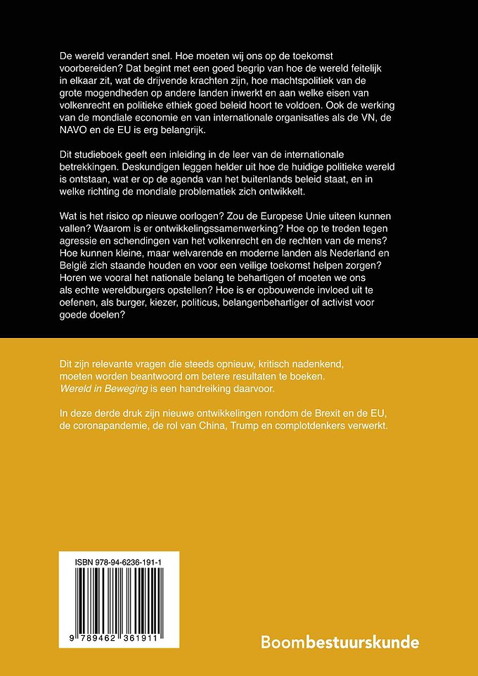 Dit studieboek geeft een inleiding in de leer van de internationale betrekkingen. Deskundigen leggen helder uit hoe de huidige politieke wereld is ontstaan, wat er op de agenda van het buitenlands beleid staat, en in welke richting de mondiale problematiek zich ontwikkelt.