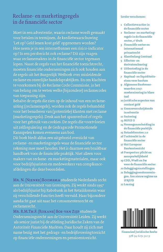 Dit boek biedt aldus een uitgebreid overzicht van reclame- en marketingregels waar de financiële sector rekening mee moet houden. Het is daarmee een bruikbaar handboek voor de financiële praktijk. Niet alleen voor makers van reclame- en marketingmaterialen, maar ook voor bedrijfsjuristen en medewerkers van compliance-afdelingen die deze beoordelen.