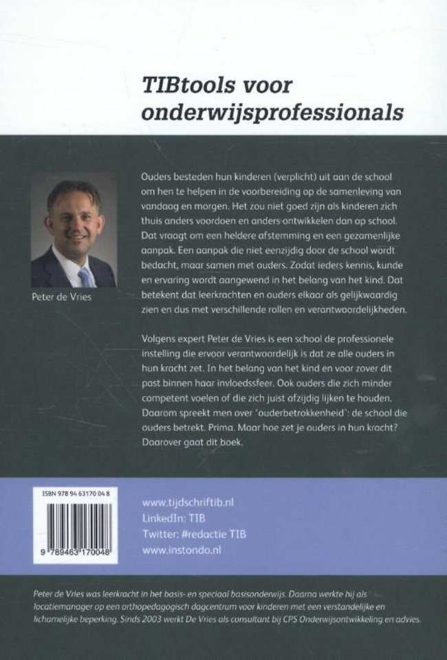 Volgens expert Peter de Vries is een school de professionele instelling die ervoor verantwoordelijk is dat ze alle ouders in hun kracht zet. In het belang van het kind en voor zover dit past binnen haar invloedssfeer. Ook ouders die zich minder competent voelen of die zich juist afzijdig lijken te houden. Daarom spreekt men over 'ouderbetrokkenheid': de school die ouders betrekt. Prima. Maar hoe zet je ouders in hun kracht? Daarover gaat dit boek.
