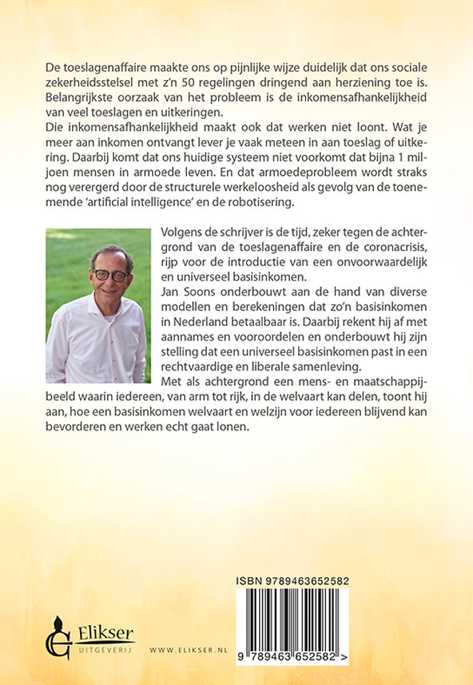 Volgens de schrijver is de tijd, zeker tegen de achtergrond van de toeslagenaffaire en de coronacrisis, rijp voor de introductie van een onvoorwaardelijk en universeel basisinkomen. Jan Soons onderbouwt aan de hand van diverse modellen en berekeningen dat zo’n basisinkomen in Nederland betaalbaar is. Daarbij rekent hij af met aannames en vooroordelen en onderbouwt hij zijn stelling dat een universeel basisinkomen past in een rechtvaardige en liberale samenleving.