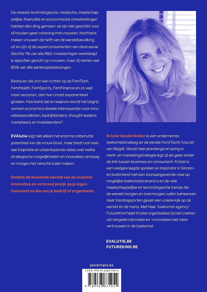 Kristel Vanderlinden is een ondernemer, toekomststrateeg en de eerste Fem(Tech)-futurist van België. Vanuit haar jarenlange ervaring in merk- en marketingstrategie legt zij als geen ander de link tussen business en consument.