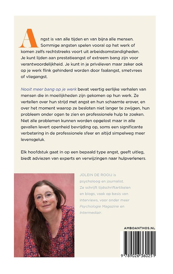 Nooit meer bang op je werk van Jolein de Rooij is voor iedereen die weleens ergens bang voor is op het werk. Het boek naar aanleiding van de succesvolle Intermediair-serie.