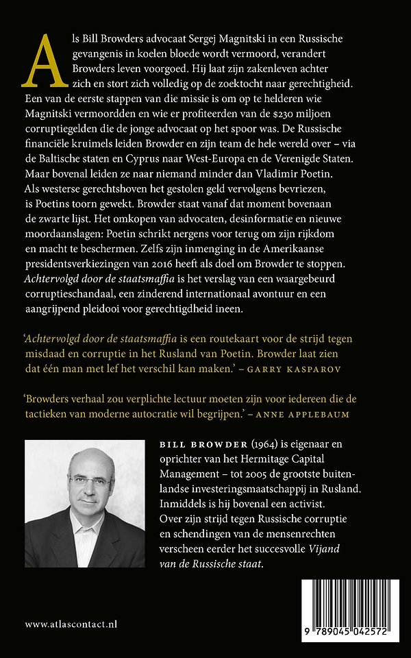 Achtervolgd door de staatsmaffia door Bill Browder is het verslag van een waargebeurd corruptieschandaal, een zinderend internationaal avontuur en aangrijpend pleidooi voor gerechtigdheid ineen.