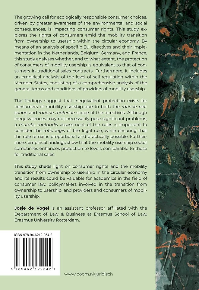 consumentenrecht mobiliteit Europees recht circulaire economie consumentenbescherming gebruikerseconomie sharing economy autodelen contractrecht duurzaamheid rechtsvergelijking richtlijnen deeleconomie wetgeving nederland algemene voorwaarden implementatie empirisch onderzoek zelfregulering transport europa gebruiksrecht contractenrecht juridische analyse frankrijk duitsland belgie