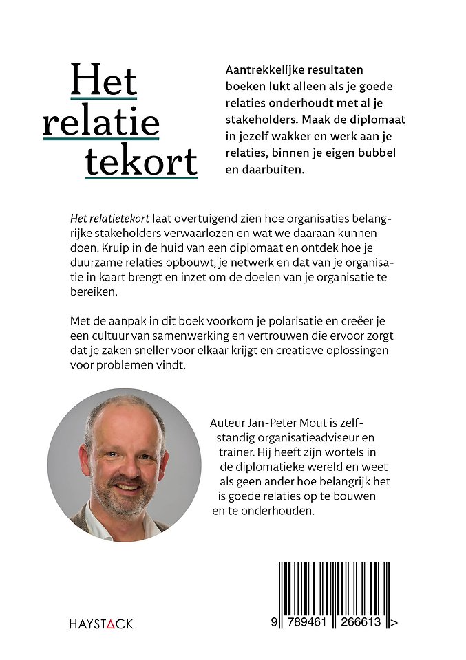 Meer over Jan-Peter MoutAantrekkelijke resultaten boeken lukt alleen als je goede relaties onderhoudt met al je stakeholders. Maak de diplomaat in jezelf wakker en werk aan je relaties, binnen je eigen bubbel en daarbuiten.